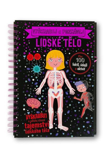 Vydej se na průzkum lidského těla a objevuj kostru, svaly i orgány. Tato nápaditá knížka je rozdělena do dvou částí. V první části je představena kostra a jednotlivé orgány, o kterých se dozvíš nejrůznější fakta a zajímavosti, doplněna stránkami s vyškrabávacími obrázky s popisky. Druhá část je poté plná kvízů, doplňování, bludišť, hledání a spojování. Ani zde nechybí nejrůznější fakta a zajímavosti o lidském těle a jeho fungování. Tak na nic už nečekej a vydej se za tímto vyškrabávacím dobrodružstvím.